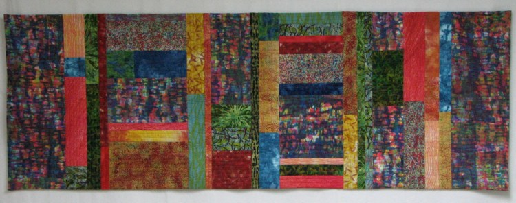 hand-dyed cotton, hand quilted, embellished with beads and yarn
