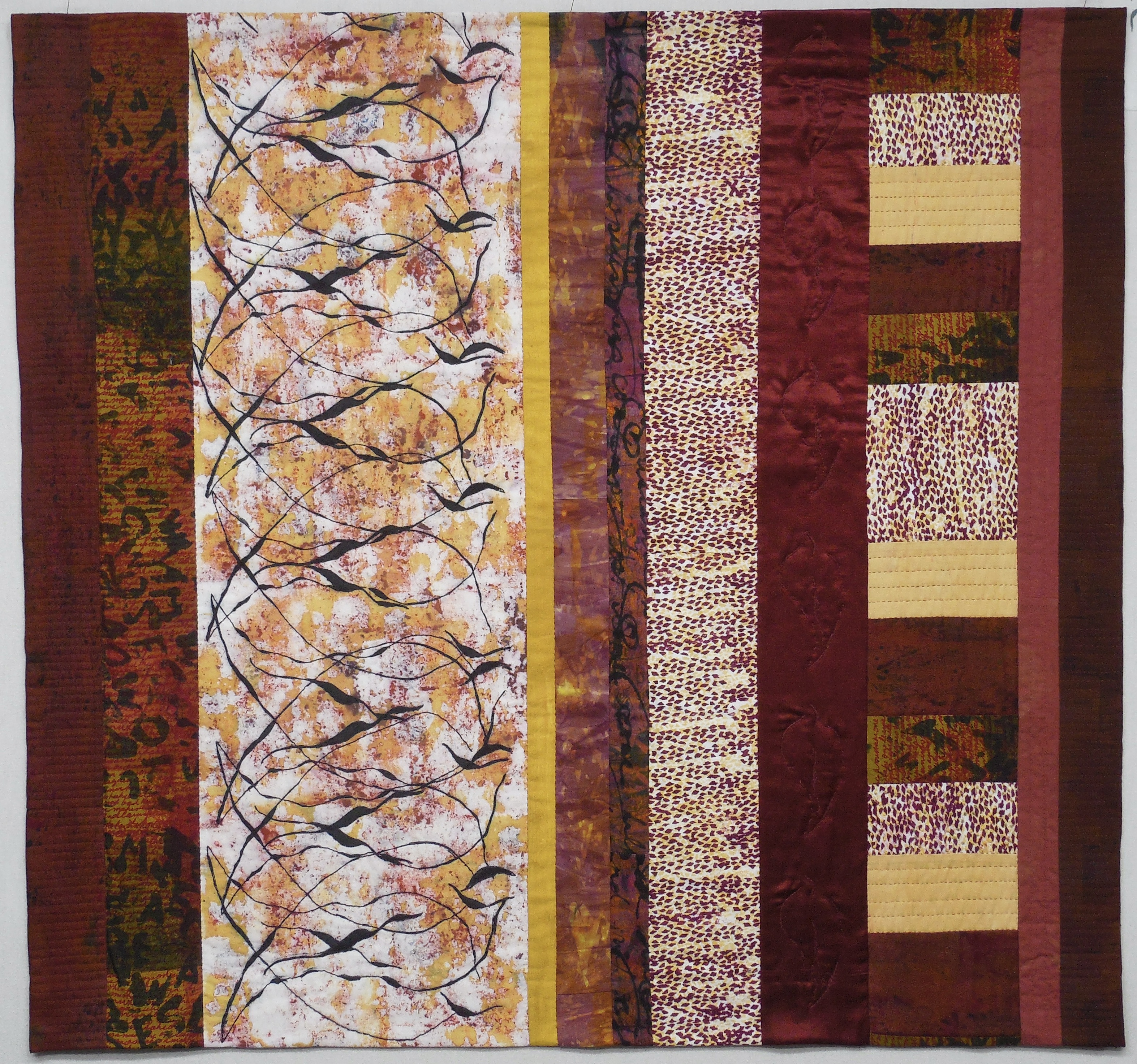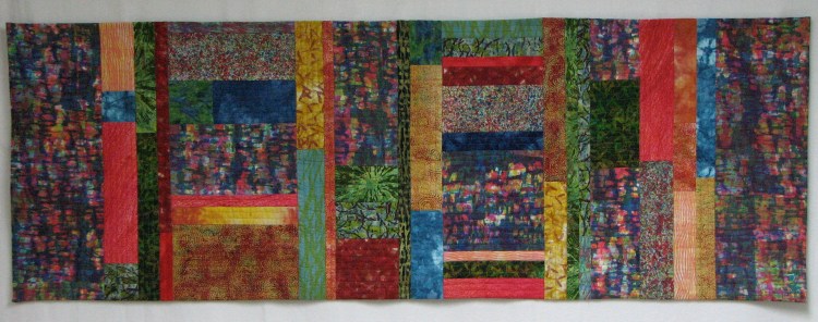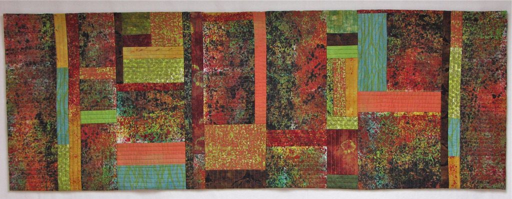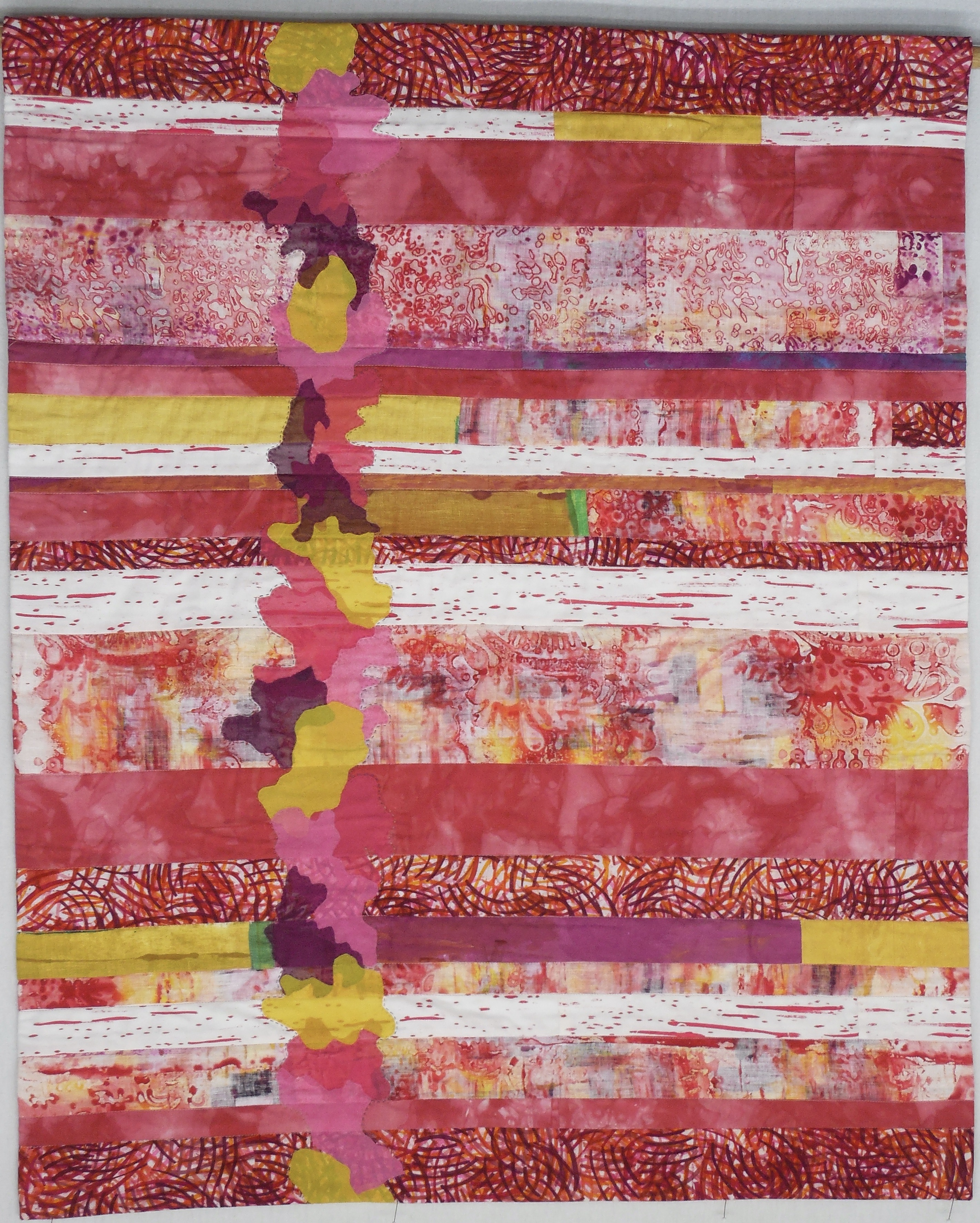 Abstract in Red (38 x 20.5”) Hand dyed cotton and silk, hand stitched