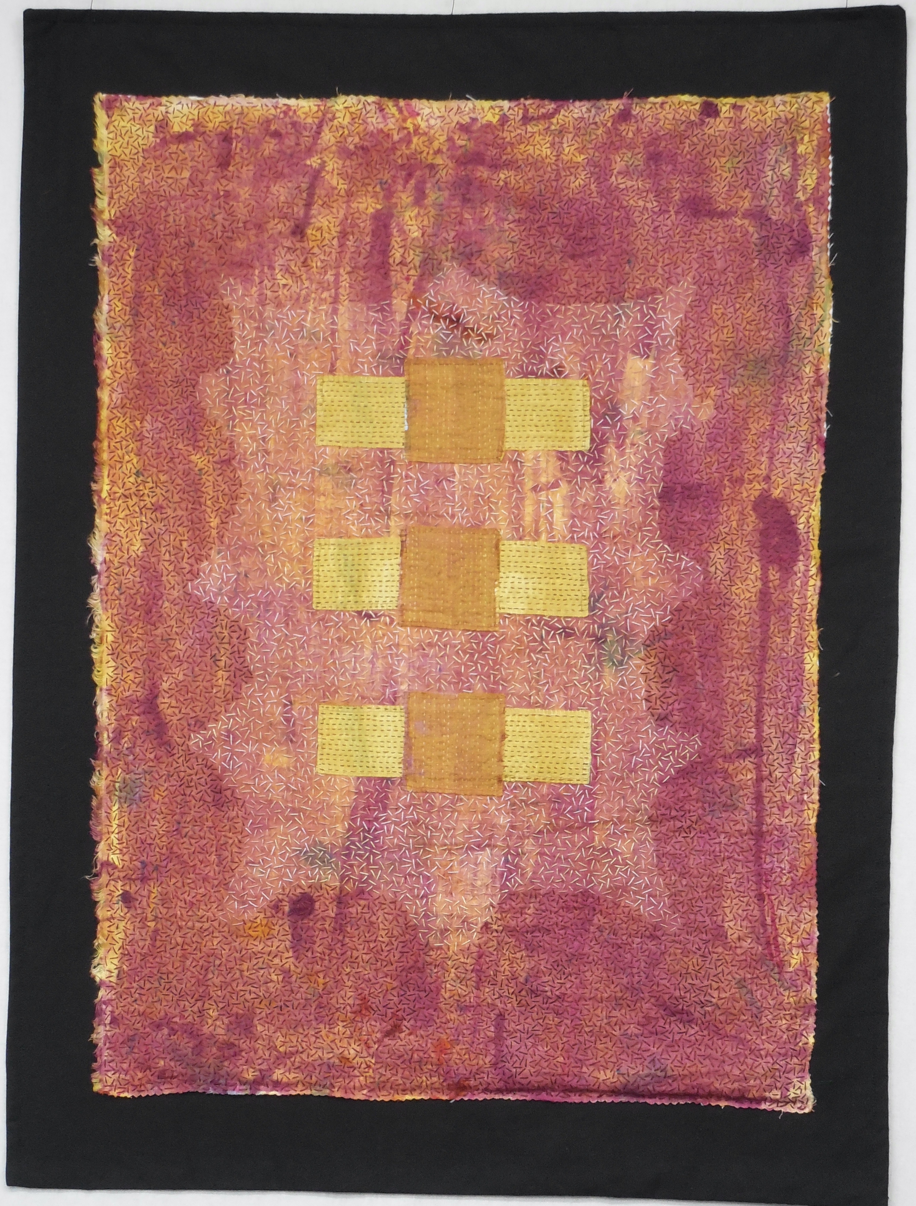 Study in Maroon and Yellow I (31 x 23”) Hand dyed linen, hand stitched