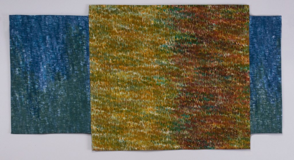 Work from 2012 Summer Trees – Hand dyed cotton, hand quilted Long Pierced – 62 ” x 22″ – Hand dyed fabrics, machine quilted