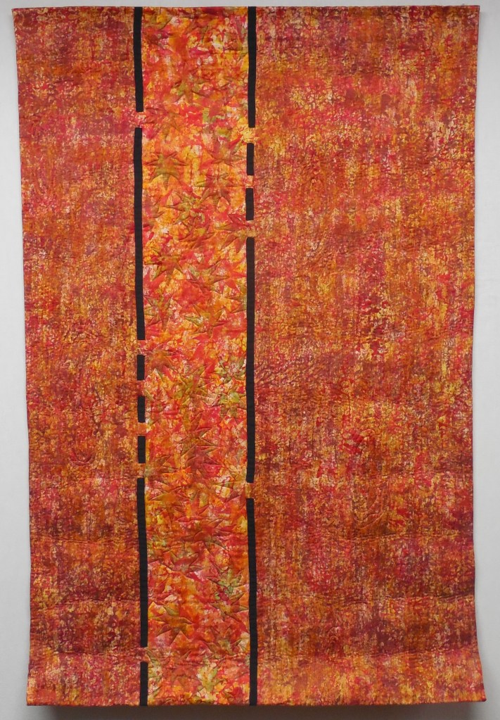 Fall Tree Column – 48.75″ x 31″ – Hand dyed cotton/ silk fabric, machine quilted