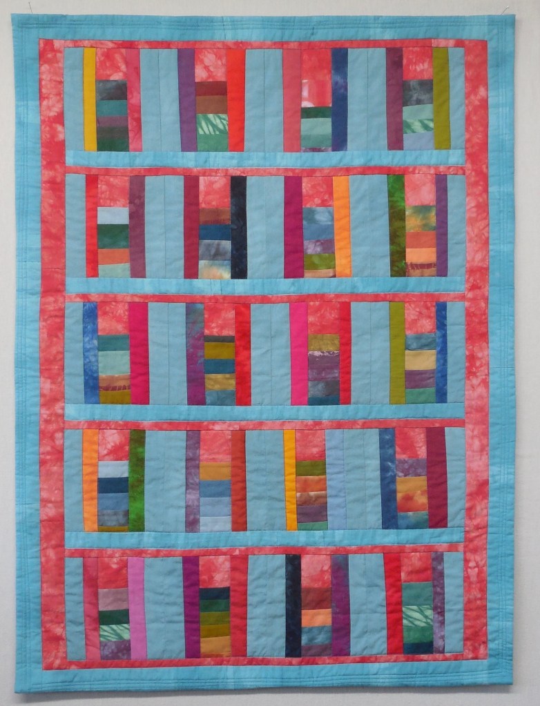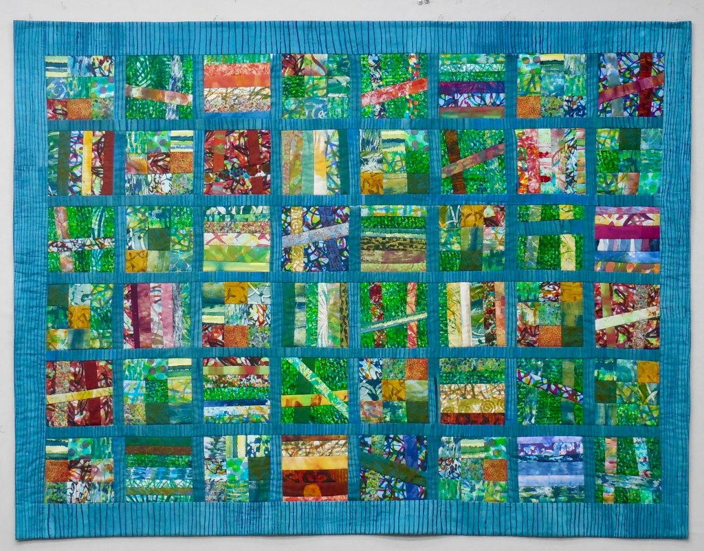 Windows of Springtime – 42.5″ x 55.5″ – Hand dyed fabric, machine and hand quilted