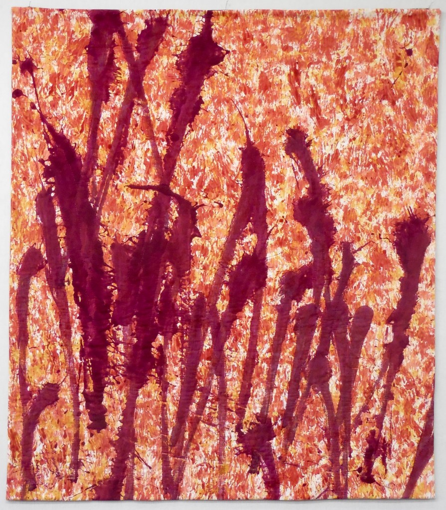 Red Reeds 41″ x 35.5 “Hand dyed cotton, hand quilted.